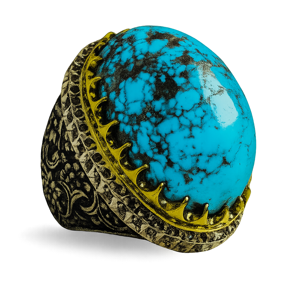 Turquoise is extensively used as a gemstone. It is a secondary mineral deposited from circulating waters, and it occurs chiefly in arid environments as blue to greenish, waxy veinlets in alumina-rich, weathered, volcanic, or sedimentary rocks. Turquoise was obtained from the Sinai Peninsula before the 4th millennium BC in one of the world’s first important hard-rock mining operations. It was transported to Europe through Turkey, probably accounting for its name, which is French for “Turkish.” Highly prized turquoise has come from Neyshābūr, Iran.