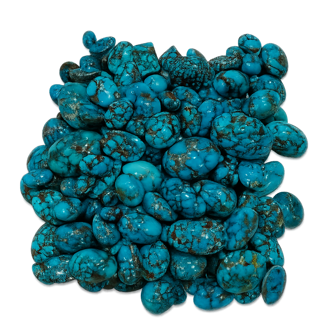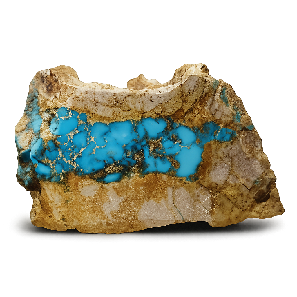 Turquoise forms where mineral-rich water seeps into rocky gaps. Over time only the minerals remain—as turquoise. The copper in turquoise gives the gem its shades of blue and green.